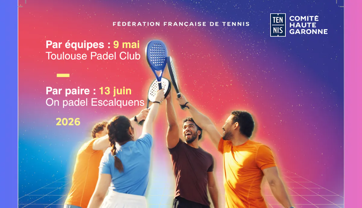 Le championnat départemental de padel par PAIRE seniors (dans les catégories Dames et Messieurs) se jouera samedi 13 juin 2026 à On Padel Escalquens (465 rue de l'Hers, 31750 Escalquens).